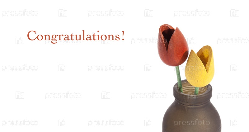 Приветственный шаблон плаката с деревянными тюльпанами, изолированными на белом фоне