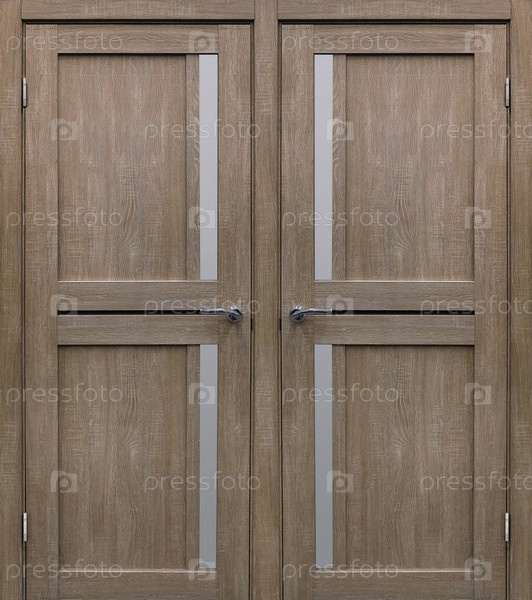 Входная двойная дверь (внутренняя деревянная дверь), изолированная на белом фоне