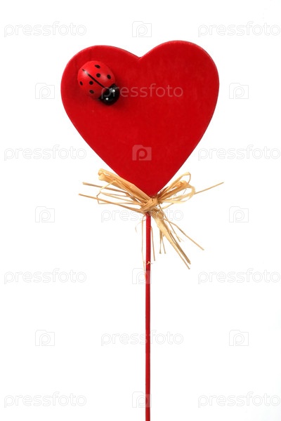 Шаблон для Валентина: Яркое деревянное сердце на палке, изолированной на белом фоне
