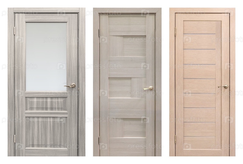 Набор входных дверей (внутренние деревянные двери) изолирован на белом фоне