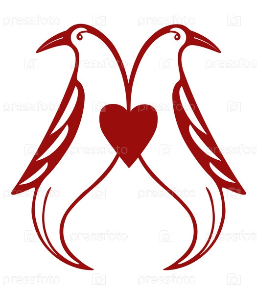 Векторный свадебный шаблон (композиция) с голубями и сердцем