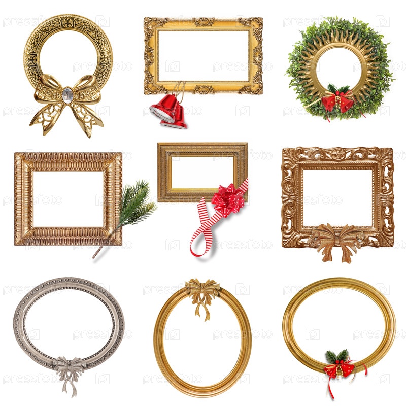 Набор золотых рам с рождественским декором изолирован на белом фоне