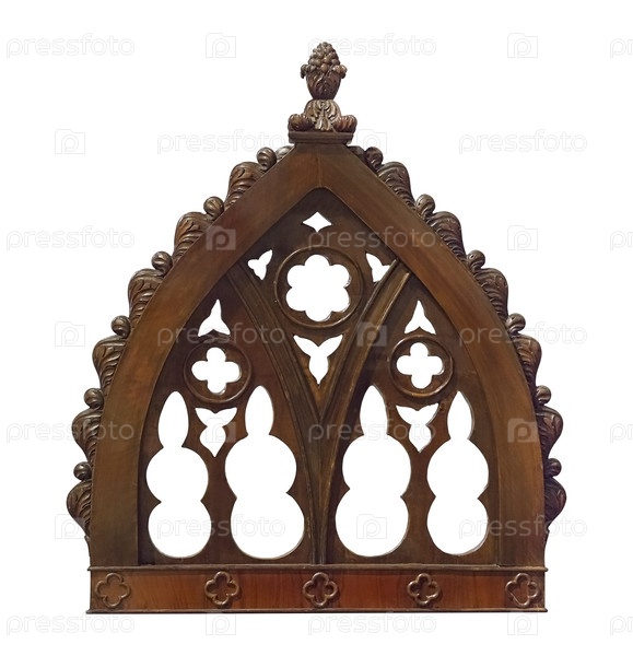 Декоративный деревянный элемент в стиле неоготики изолирован на белом фоне