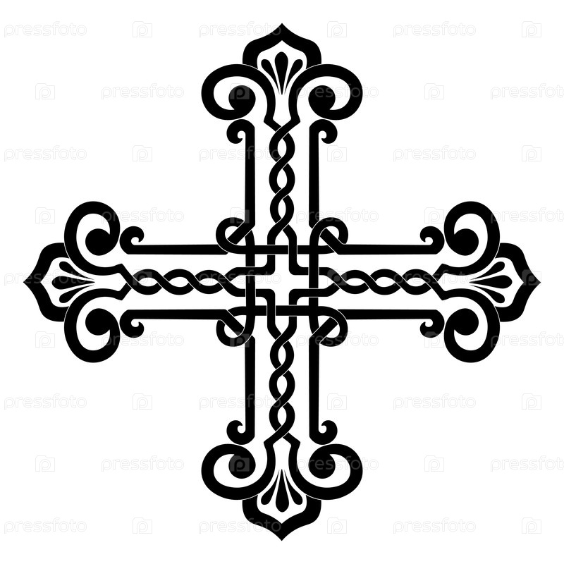 Христианский контур креста в средневековом стиле. Изолированный векторный рисунок