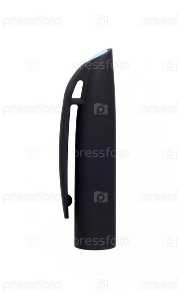 Черный пластиковый колпачок для шариковой ручки изолирован на белом фоне