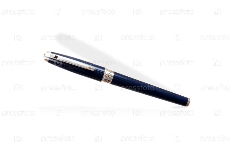 Синяя шариковая ручка изолирована на белом фоне