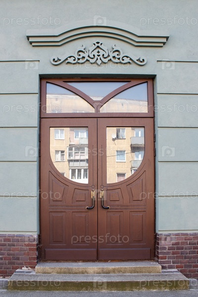 Красивая современная деревянная входная дверь снаружи