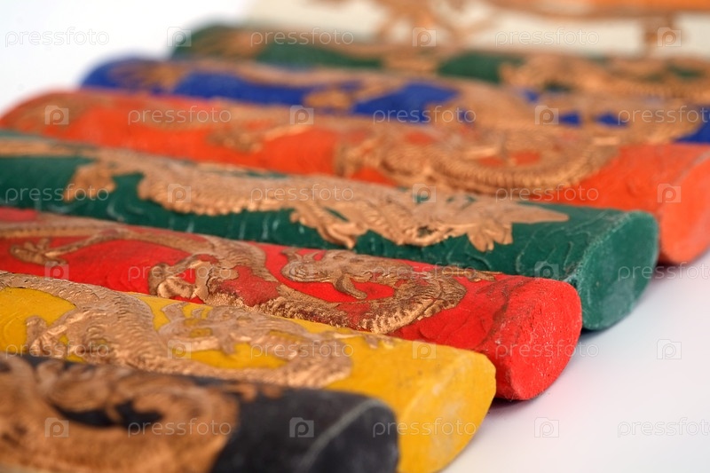 Цветные палочки из китайских чернил изолированы на белом фоне