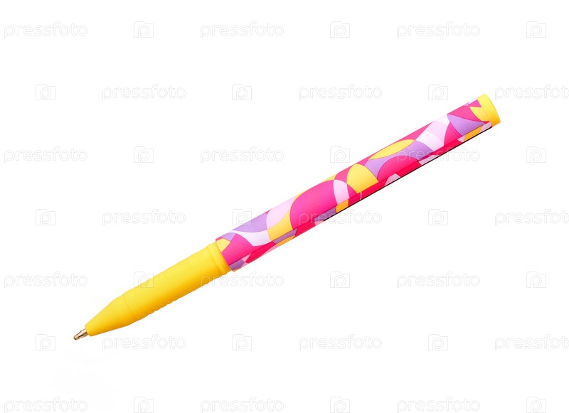 Розовая и желтая шариковая ручка изолирована на белом фоне