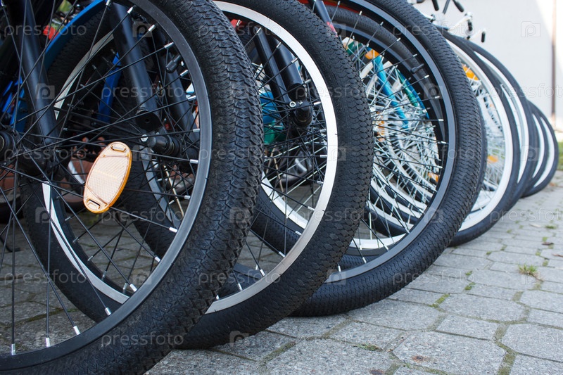 Новые велосипеды для продажи рядом с магазином на открытом воздухе