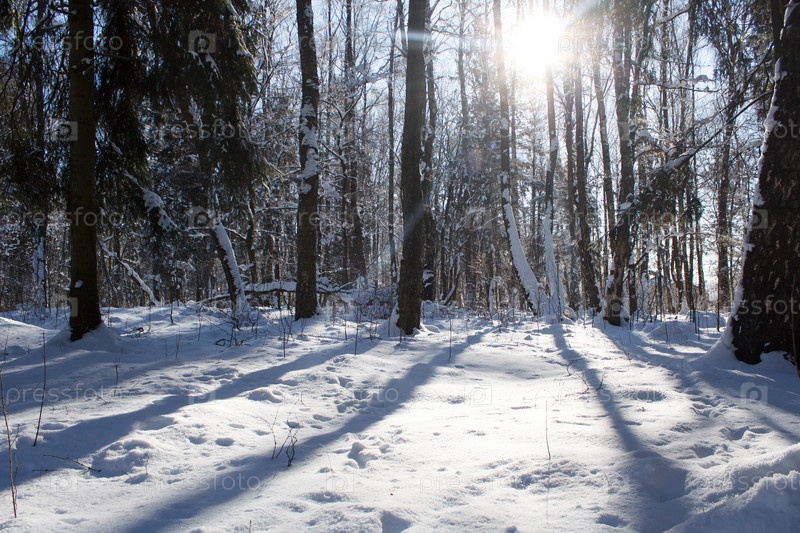 Лесной пейзаж в солнечный зимний день