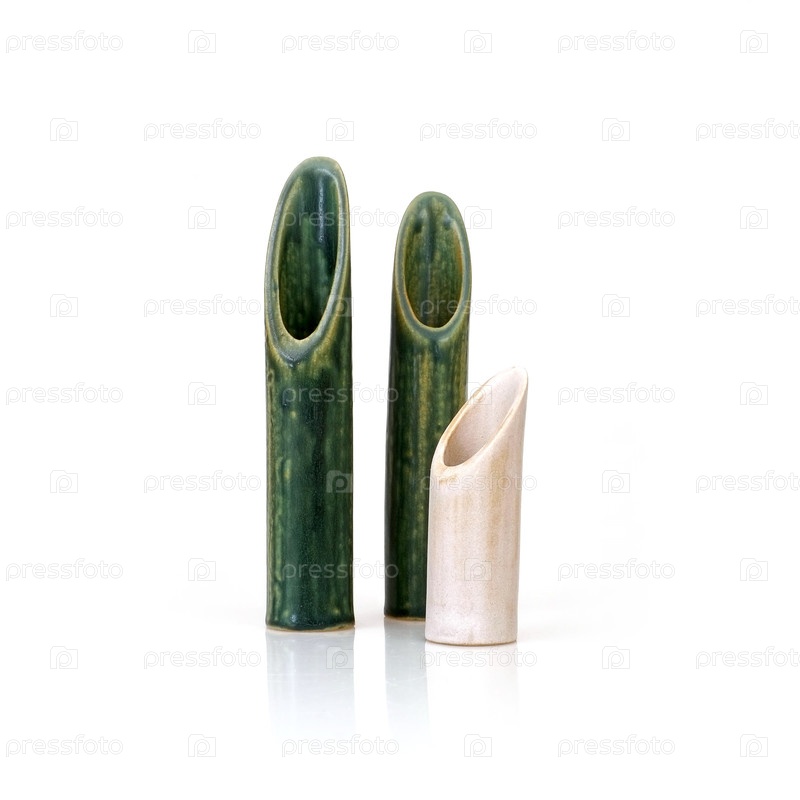 Керамическая ваза ручной работы в виде бамбукового стебля изолирована на белом фоне