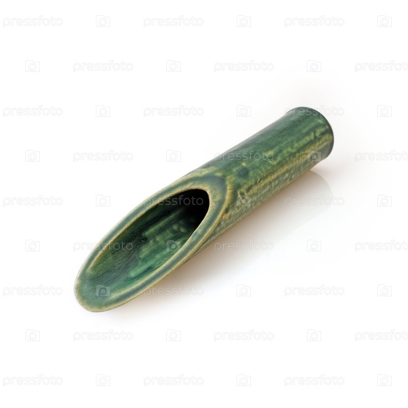 Керамическая ваза ручной работы в виде бамбукового стебля изолирована на белом фоне
