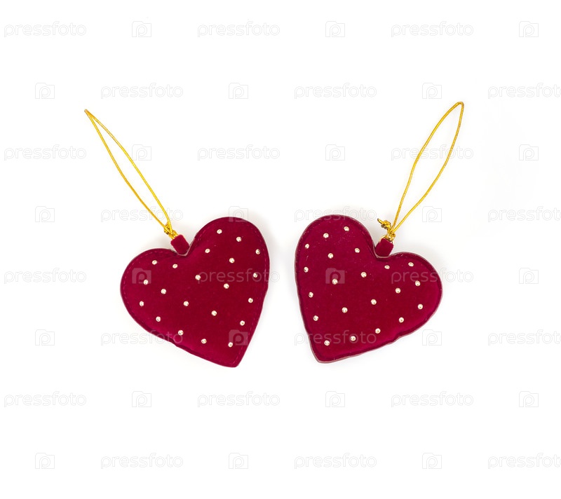 Бархатно-красные сердца подарок для орнамента изолированы на белом фоне
