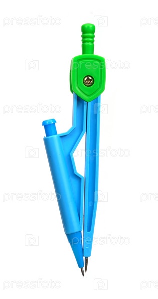 Голубой пластиковый школьный компас на белом фоне
