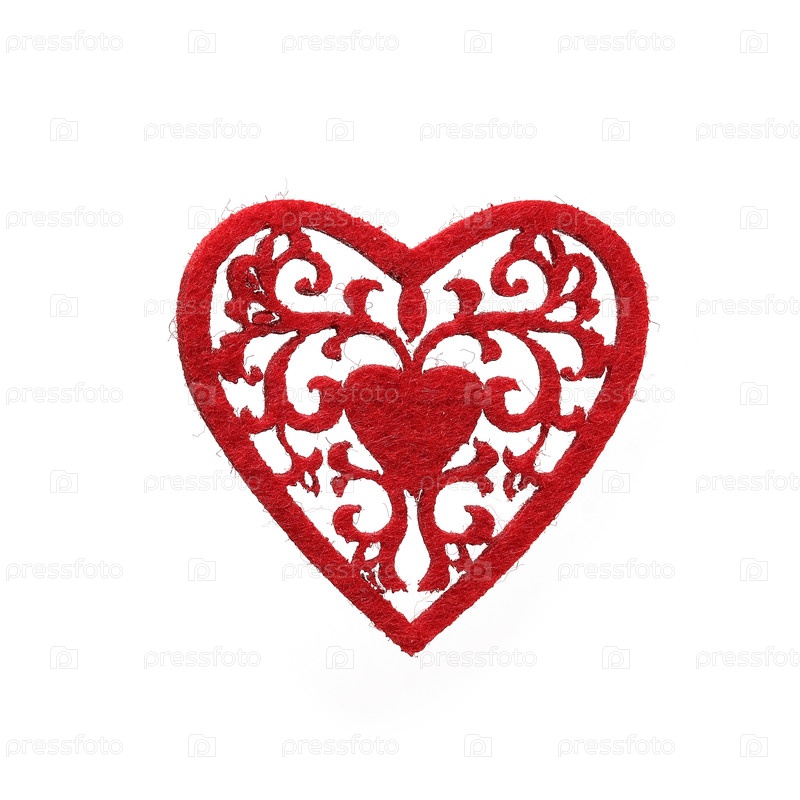 Красное декоративное Рождество почувствовало сердце изолированным на белом фоне
