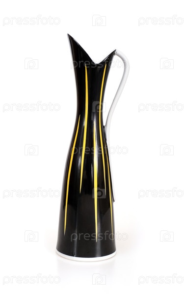 Керамическая черная и желтая ваза выделена на белом фоне