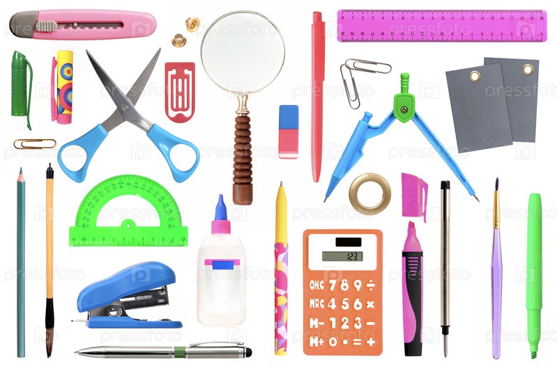 Набор канцелярских принадлежностей изолирован на белом фоне