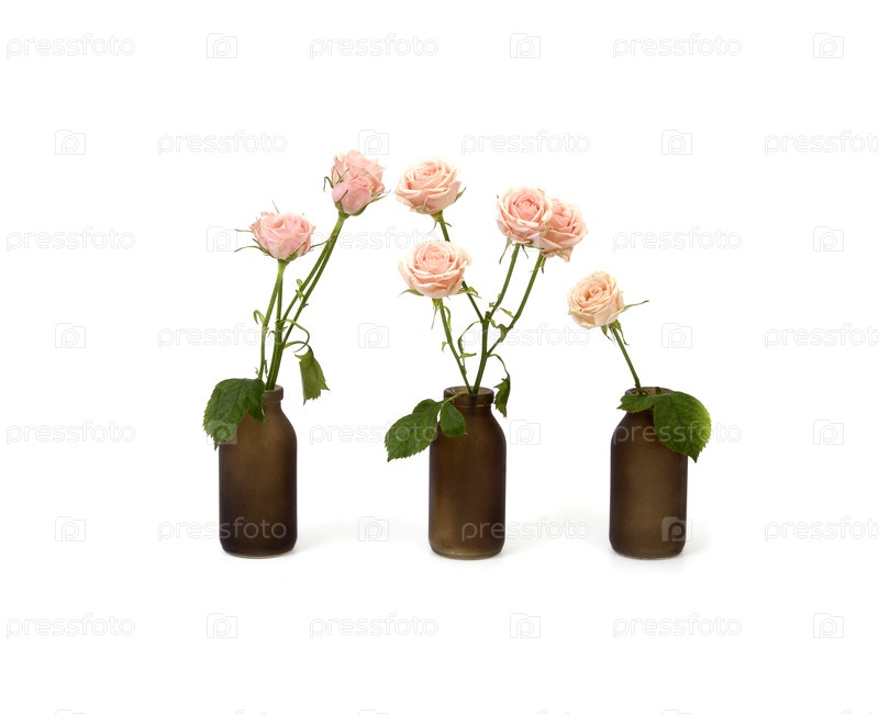 Белые розы в черной вазе выделены на белом фоне