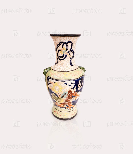 Китайская ваза в древних традициях выделялась на белом фоне. Элемент дизайна с обрезкой пути