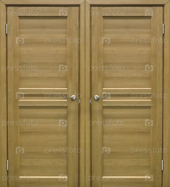 Входная двойная дверь (внутренняя деревянная дверь), изолированная на белом фоне