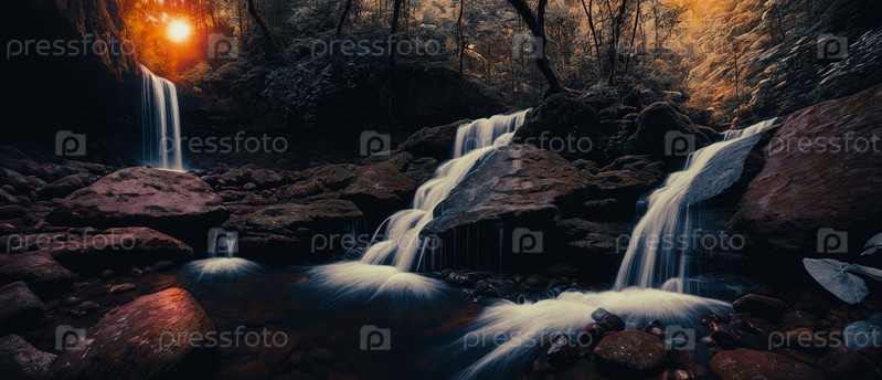 Фантазийный пейзаж с водопадами, панорама
