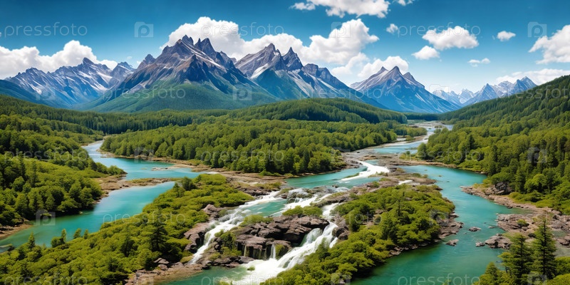 Пешие прогулки по безмятежному горному лесу, прибытие к спокойному озеру, окруженному высокими деревьями и величественной вершиной. Генеративный ИИ