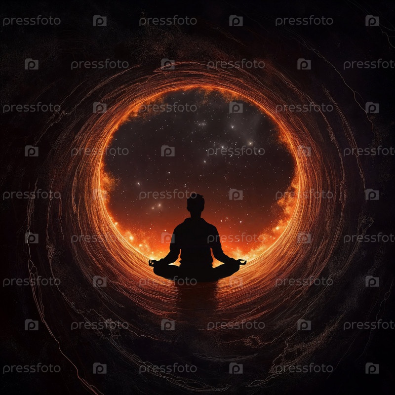 Медитирующий человек на краю черной дыры. ИИ генеративный
