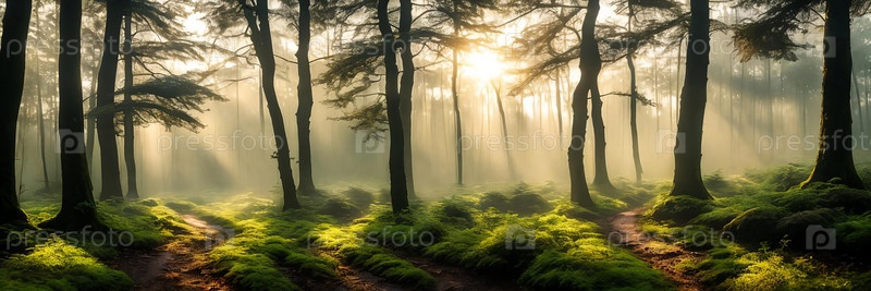 Серена красоты туманного леса на рассвете