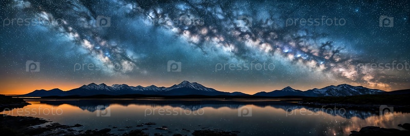 Марвел звездного ночного неба в отдаленном месте с силуэтом отдаленного горного хребта, добавляющим глубину к изображению