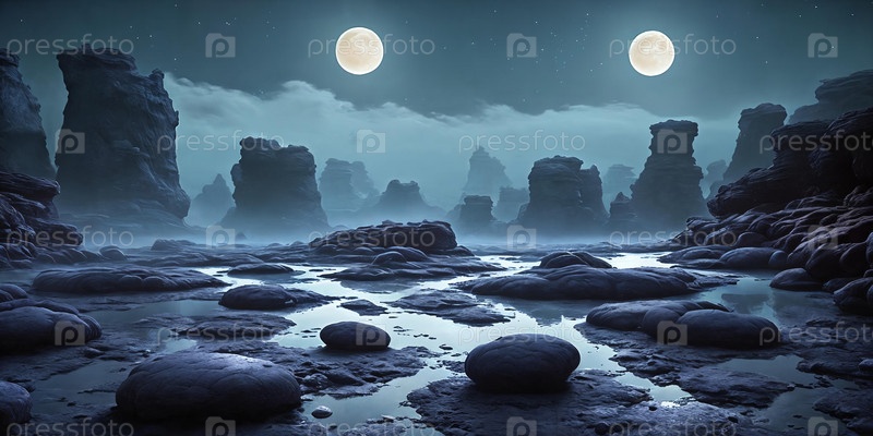 Lunar Dreamscape. мечтательное изображение лунного пейзажа на пустынном инопланетном мире