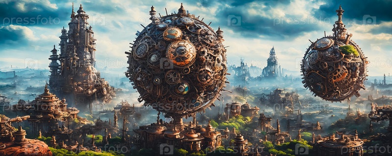 Планета, которая сочетает в себе фантазию и машины с гигантскими, сложными детальными часовыми конструкциями, высокими передачами и фантастическими паровыми пейзажами под небом, наполненным металлическими облаками