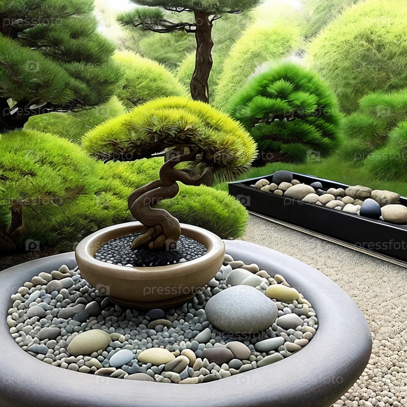 Момент осознанности. Захватите суть осознанности и медитации, сфотографировав сад дзен с тщательно устроенной галькой, миниатюрным деревом бонсай и спокойным фонтаном воды, чтобы вызвать чувство покоя и равновесия