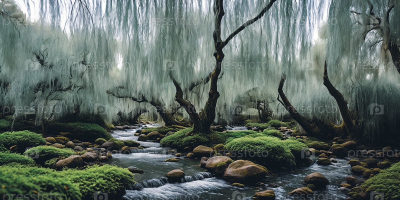 Шепот Уиллоу Гроув. Под древними ивовыми деревьями появляются их длинные ветви, тянущиеся в серебряной реке, крошечные двери. Здесь собираются феи, спрайты и лесные существа, которые делятся секретами и смехом