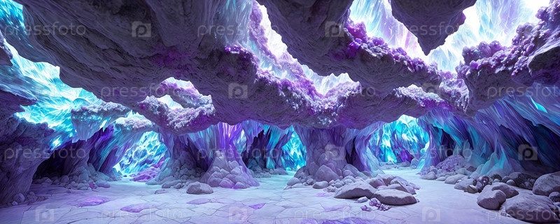 Кристаллическая пещера, подземный мир, наполненный мерцающими кристаллическими образованиями и иридами