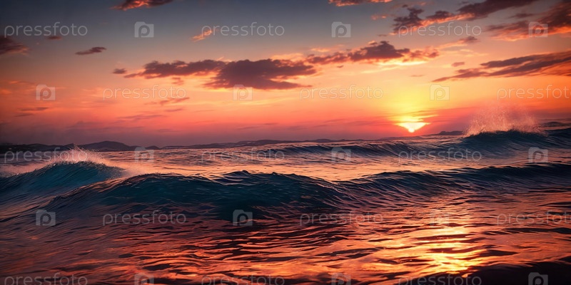 Закат над морем, панорама. ИИ генеративный
