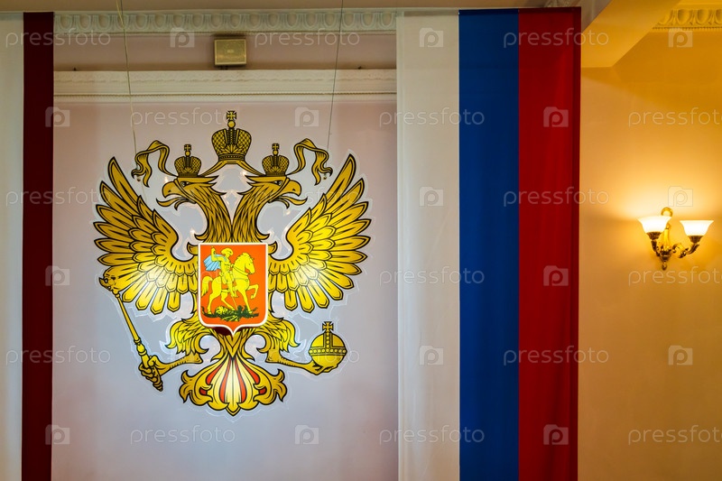 Герб и флаг России. Театр имени А.П. Чехова. Ялта. Крым
