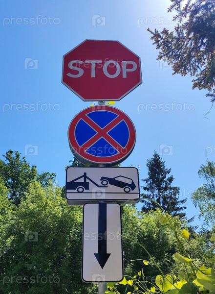 Дорожные знаки: парковка запрещена, работает эвакуатор