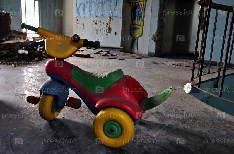 Маленький велосипед в брошенном интерьере