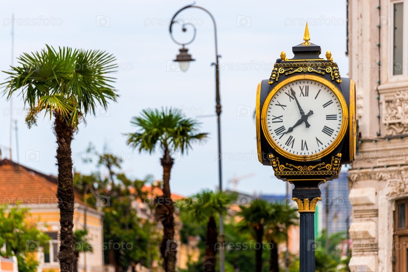 Старые уличные часы в Европе. Архитектурный элемент на главной площади в Батуми