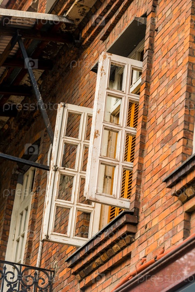 Открытое окно в архитектуре кирпичного здания