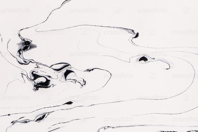 Абстрактный мраморный фон черно-белой поверхности. Фоновое изображение гладких штрихов черной акриловой краски на белой поверхности. Копирование пространства