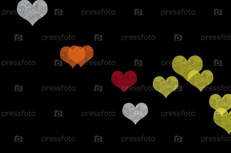 Цветные сердца, гранж, иллюстрация