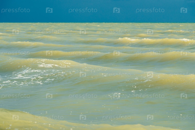 Море и голубое драматическое небо. прилив в море во время синих сумерек в пасмурную погоду