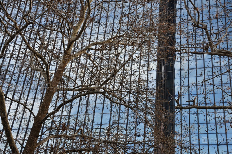 Стеклянный фасад и ветки дерева
