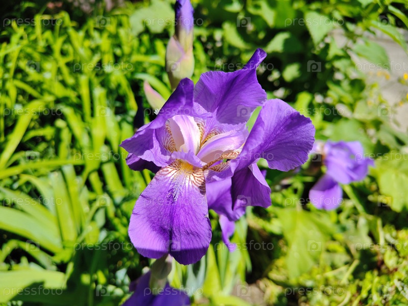 Фиолетовый цветок на клумбе