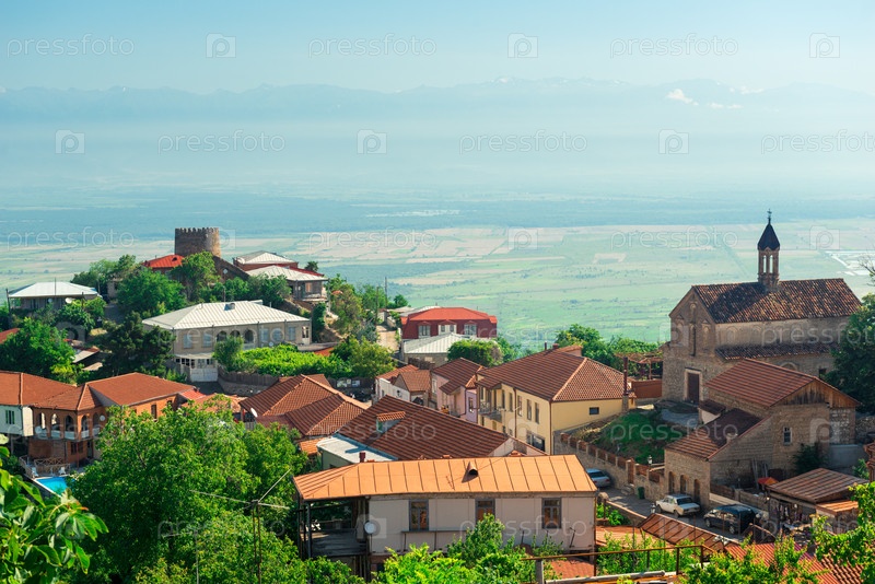 Вид на Сигнаги и долину Алазани, Грузия. Город любви Сигнахи в Грузии, регион Кахетия