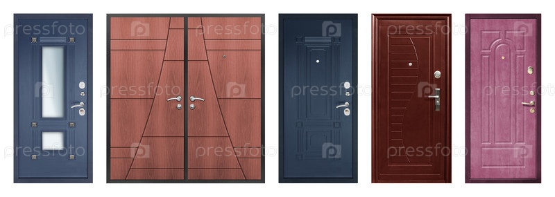 Набор моделей входных металлических дверей изолирован на белом фоне