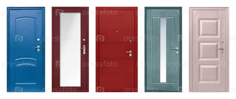Набор моделей входных металлических дверей изолирован на белом фоне