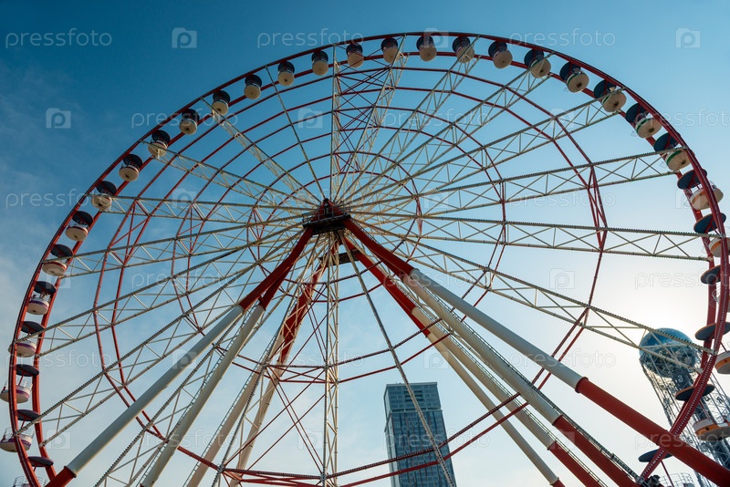 Большое колесо обозрения на набережной Батуми, Джорджия. Вид сверху вниз